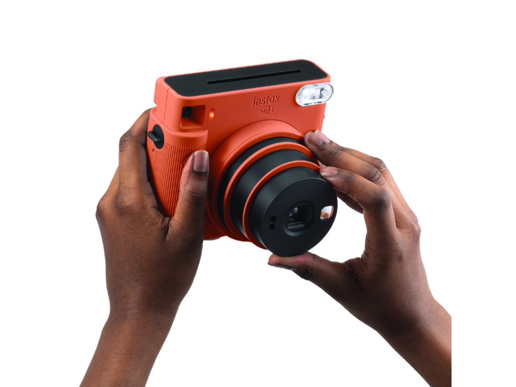 FujiFilm Instax Square SQ1 Orange je stylový instantní fotoaparát navržený pro snadné a rychlé zachycení okamžiků s krásným čtvercovým formátem fotografií o velikosti 62 × 62 mm. Zapíná se otočením objektivu, který zároveň slouží k přepnutí do selfie režimu s vestavěným předním zrcátkem, jež pomáhá přesně komponovat autoportréty při vzdálenosti 30–50 cm. Fotoaparát má automatickou expozici, která optimalizuje světelné podmínky, a vybaven je výkonným vestavěným bleskem s dosahem 0,3 až 2,2 metru, což zajišťuje kvalitní snímky i ve slabším osvětlení.