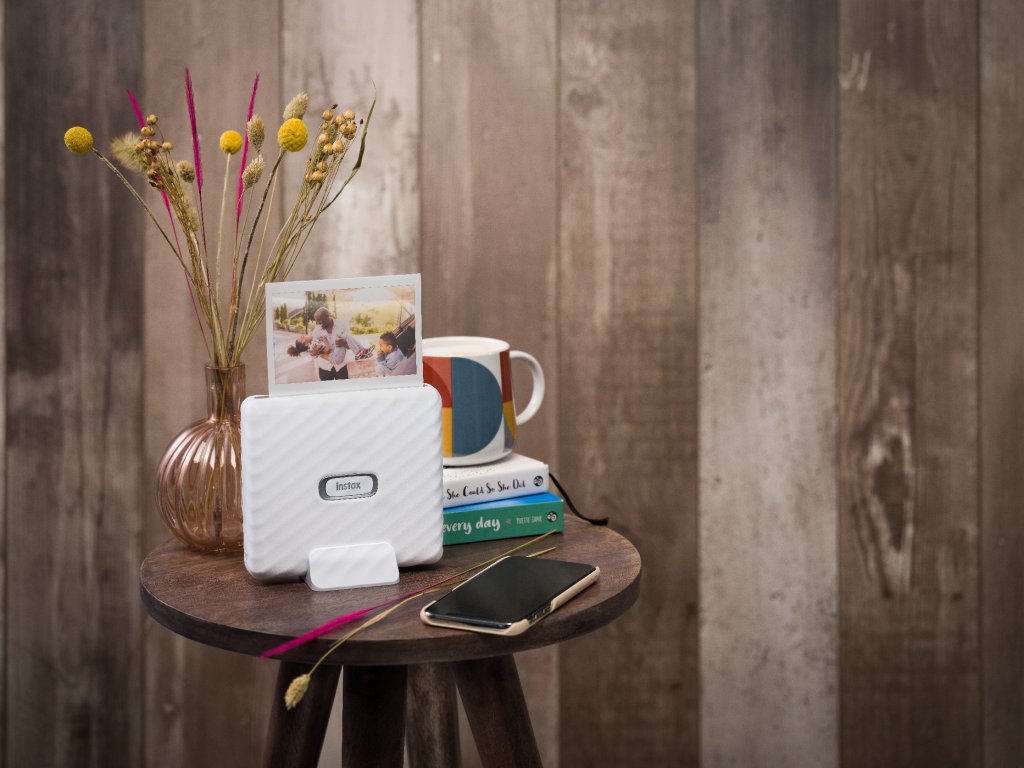 - Okamžitý tisk širokoformátových fotografií na Instax Wide film (62 × 99 mm)