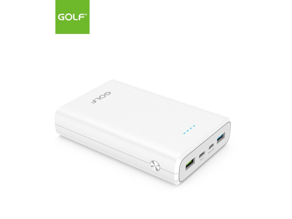 Golf G98 powerbanka s kapacitou 20 000 mAh je vybavena vstupem micro USB a konektorem typu C. Poskytuje možnost dobíjení dvou zařízení současně s výstupem USB DC5V/1A a druhým výstupem USB DC5V/2.1A. Kompaktní provedení poskytuje dodatečnou energii pro různé zařízení a tak nezůstanete na cestách bez energie. Integrované LED diody informují o stavu jejího nabití.