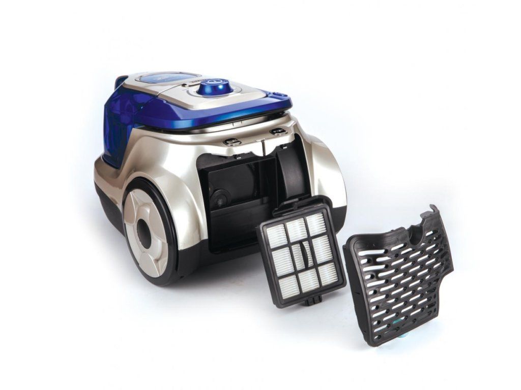 Dvojitý HEPA 13 filtr zachytává výkonné i jemné částice, přispívající k lepší kvalitě vzduchu v místnosti. Vysavač disponuje variabilním nastavením sacího výkonu, kovovou teleskopickou trubicí a praktickými nástavci 2v1, včetně štěrbinové a čalouněné hubice pro různé úklidové potřeby. K ukládání je vybaven automatickým navíjením kabelu.