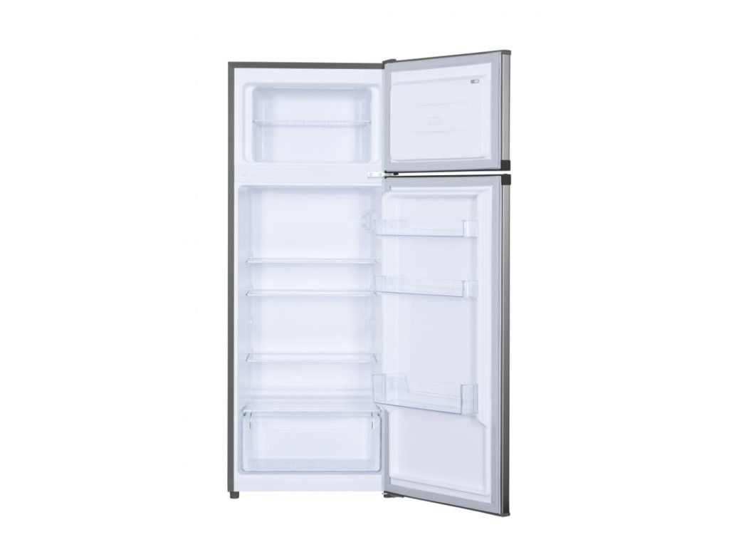 Nerezová chladnička HEINNER HF-H2206XE++ s mrazákem nahoře je praktickým a estetickým řešením pro každodenní uchovávání potravin. Povrchová úprava v nerezovém vzhledu (Inox Look) se snadno kombinuje s ostatními kuchyňskými spotřebiči. Chladnička nabízí úsporné LED osvětlení a variabilní vnitřní prostor s nastavitelnými policemi. Díky energetické třídě E a tichému provozu představuje ideální poměr mezi cenou, výkonem a stylem.