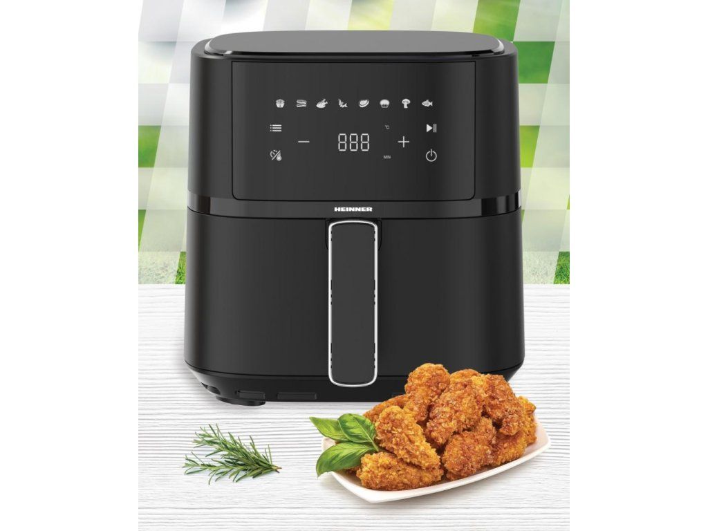 Horkovzdušná fritéza HEINNER HAF-B4BK1500 je moderní kuchyňský pomocník pro zdravější přípravu jídel s minimem oleje. Rychlá cirkulace horkého vzduchu zajišťuje rovnoměrné propečení a křupavý výsledek, zatímco vnitřek zůstává šťavnatý. Kapacita 4 litry je ideální pro 2–4 osoby a výkon 1500 W zkracuje dobu přípravy. Digitální dotykové ovládání s 8 automatickými programy usnadňuje výběr ideálního nastavení pro hranolky, kuře, ryby, zeleninu či pečivo. Vyjímatelný nepřilnavý koš se snadno čistí a bezpečnostní prvky (automatické vypnutí, ochrana proti přehřátí) zajišťují klidný provoz.