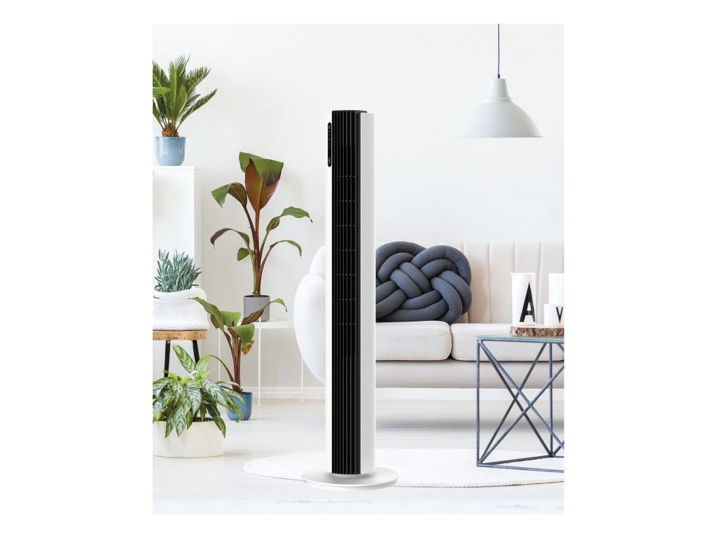 Funkce oscilace zajišťuje rovnoměrné rozložení vzduchu po celé místnosti, což přispívá k příjemnému a vyváženému klimatu. Ventilátor je navržen s důrazem na tichý provoz, takže jej můžete bez obav používat i v ložnici nebo pracovně, aniž by vás rušil při spánku nebo práci. Elegantní bílý design s moderními liniemi se hodí do každého interiéru a podtrhne styl vašeho domova.