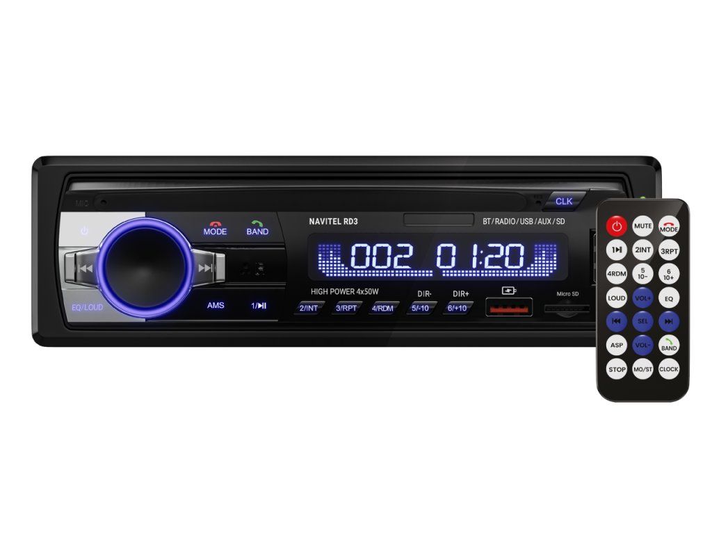 NAVITEL RD3 je multifunkční autorádio ve standardní velikosti 1DIN. Radio je vybaveno digitálním FM modulem s rozsahem příjmu FM 87,5-108 MHz, do paměti lze uložit 18 stanic, které lze snadno přepínat pomocí tlačítek na předním panelu. Zařízení poskytuje ovládání basů a výšek, stejně jako několik přednastavených nastavení ekvalizéru. Díky RCA výstupům můžete k zařízení připojit i externí zesilovač. Samozřejmostí je také RDS příjem.
