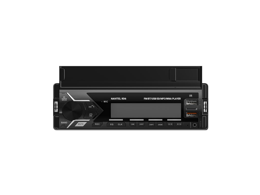Navitel RD6 podporuje širokou škálu audio formátů včetně MP3, WMA a FLAC, což zajišťuje vysokou kompatibilitu s většinou nosičů hudby. Zařízení je dále vybaveno rozhraním AUX-in pro připojení externích audio zdrojů a dvěma USB porty – horní port umožňuje přehrávání z flash disků s kapacitou až 256 GB, zatímco dolní slouží k nabíjení mobilních zařízení, čímž zajišťuje, že vaše zařízení nikdy nezůstanou bez energie.