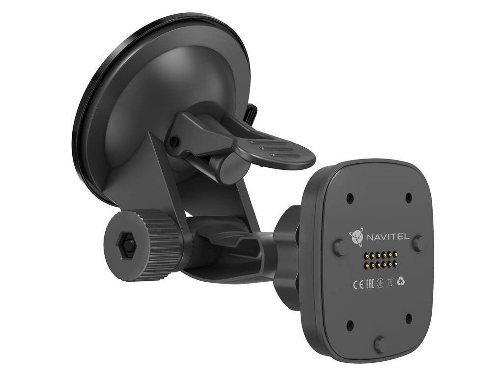 Jednou z klíčových výhod NAVITEL RE 5 DUAL je magnetický držák s nepřetržitým napájením. Držák s přísavkou na sklo, který je součástí balení, se pevně připevňuje k čelnímu sklu automobilu. Prostřednictvím USB portu je připojen k zásuvce zapalovače. Nabíječka do auta NAVITEL je také součástí balení.