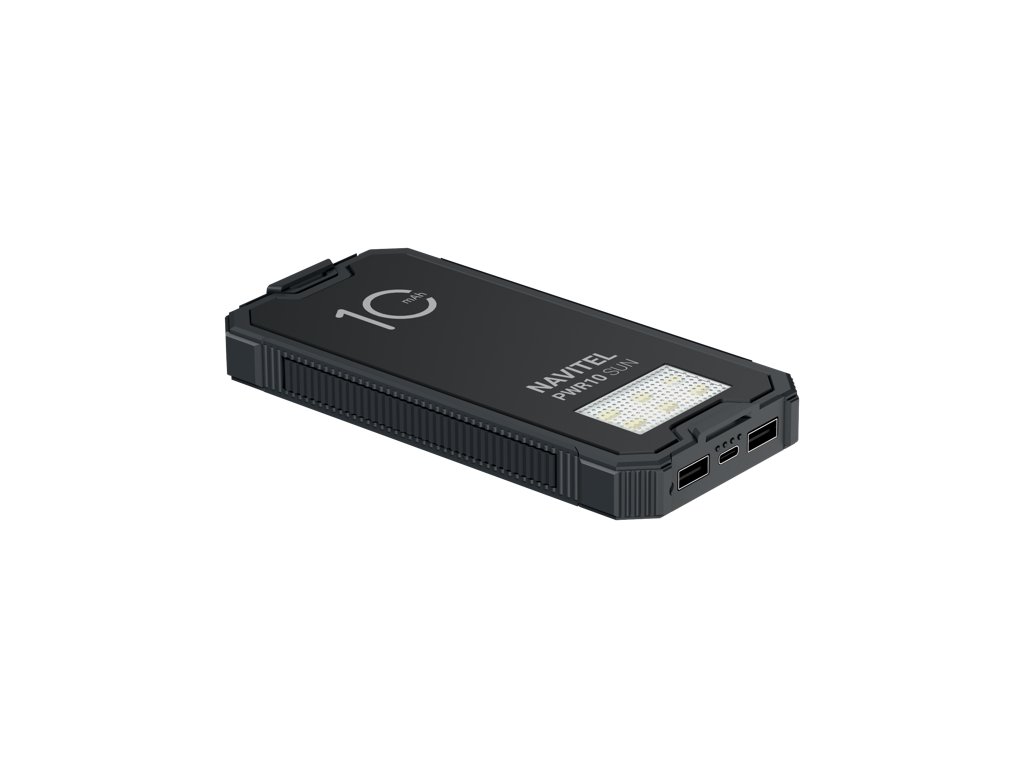 NAVITEL PWR10 SUN je přenosná baterie s kapacitou 10000mAh s vyztuženým tělem a nízkou hmotností, vybavená kompaktním solárním panelem. 2 vestavěné USB-A výstupy a 2-cestný USB-C port umožňují nabíjet několik zařízení současně. NAVITEL PWR10 SUN je kompatibilní se všemi mobilními telefony a dalším elektronickým zařízením.