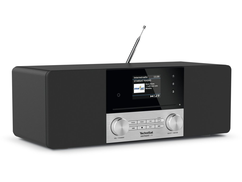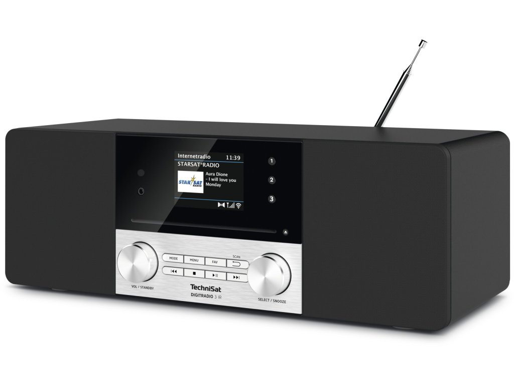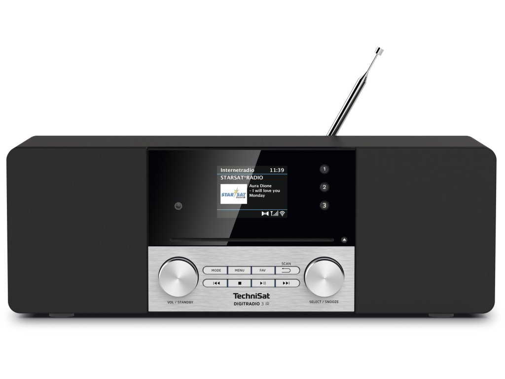 DIGITRADIO 3 IR je digitální rádio, které zaujme svým elegantním designem. S tímto rádiem si můžete vychutnat rozhlasové stanice prostřednictvím DAB+, FM i internetového rádia přes Wi-Fi. Zařízení můžete ovládat pomocí jednoduchého otočného tlačítka na rádiu, dálkovém ovladačem, který je součástí balení, nebo aplikací TechniSat Connect na chytrém telefonu. K DIGITRADIu 3 IR lze přes Bluetooth připojit mobilní telefon, nebo tablet a přehrávat vaši oblíbenou hudbu na rádiu. Dále můžete přehrávat MP3 soubory přes USB, nebo si poslechnout sbírku svých DC na zabudovaném CD přehrávači.