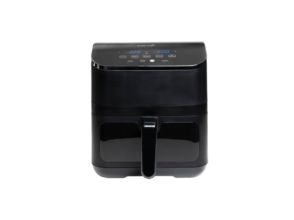 Horkovzdušná fritéza VIVAX DFA-617DB s objemem 6 litrů a maximálním výkonem 1875 W připraví v mžiku zdravě a jen s jednou lžičkou oleje křupavé hranolky nebo obalované maso. Díky technologii proudění vzduchu „CycloneTech“, která díky speciálně navržené vnitřní struktuře koše, rozložení otvorů a konstrukci ventilátoru je proudění vzduchu extrémně rovnoměrné na všech úrovních uvnitř koše, což má za následek rychlé a rovnoměrné smažení potravin bez nutnosti častého třepání koše.