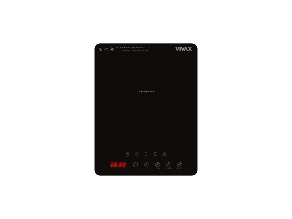Indukční varná deska VIVAX HPI-2000TP šetří místo. Jedná se o tenkou, přenosnou 2000 W indukční desku s dotykovým ovládáním. Tato indukční varná deska má vestavěnou funkci časovače (1 - 4 hodiny) s automatickým vypnutím a 5 předdefinovaných funkcí vaření. LED displej panelu zobrazuje indikátor výkonu, času a teploty.
