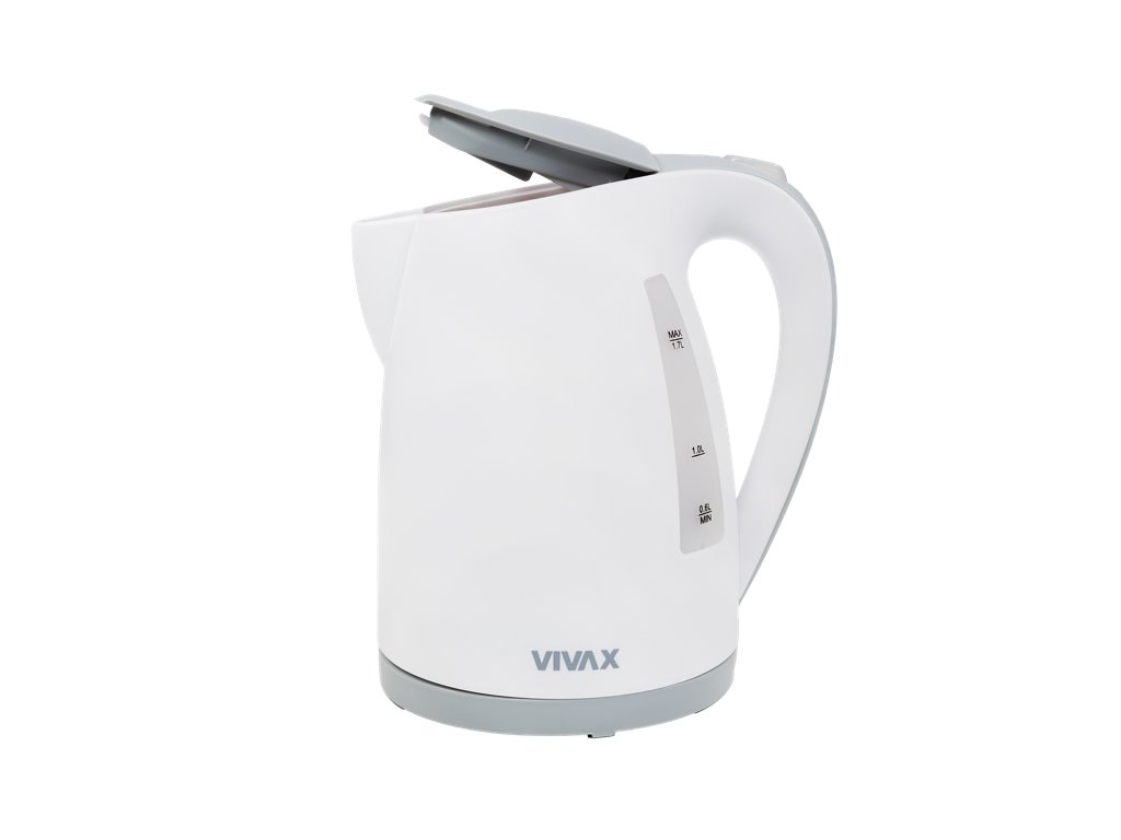 Rychlovarná konvice VIVAX WH-170BW s objemem 1,7 l a topným výkonem 2200 W ohřeje vodu rychle a efektivně a její skrytý ohřívač a filtr vodního kamene usnadňují čištění a údržbu.